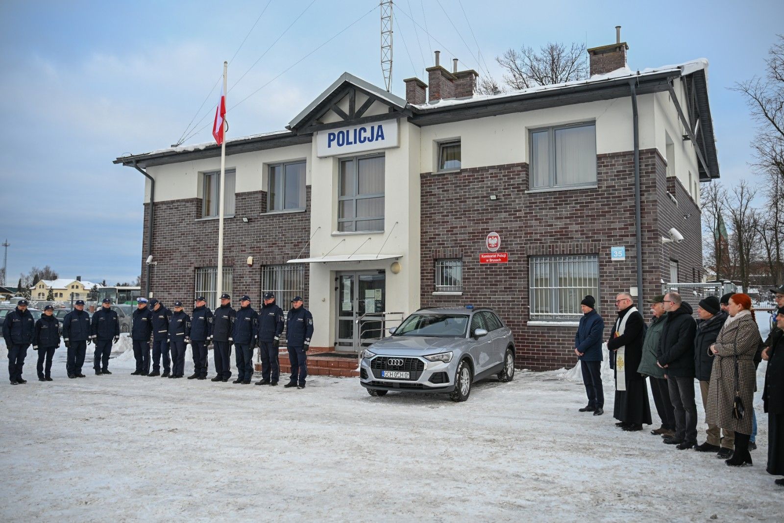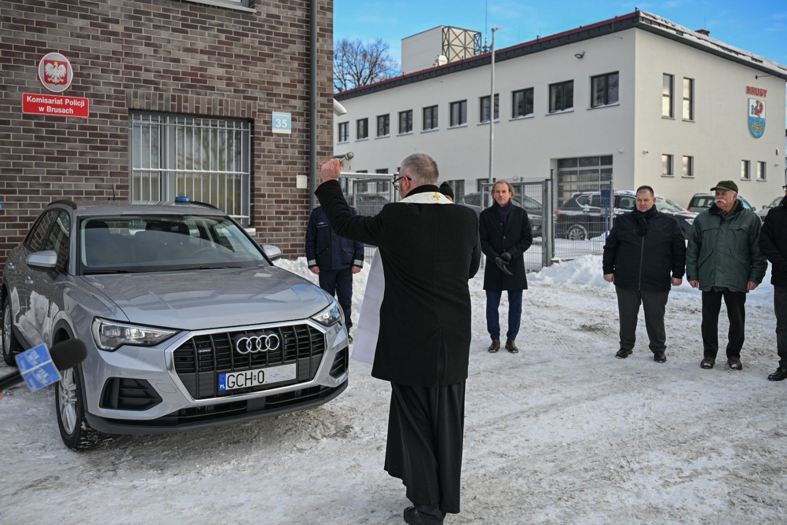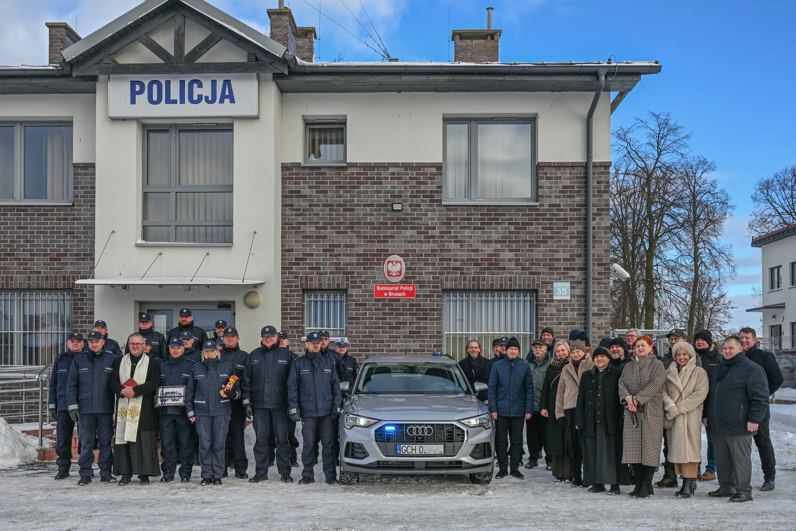 Uroczystość koordynowała Komenda Powiatowa Policji w Chojnicach na czele z komendantem powiatowym mł. insp. Sebastianem Pastuchą. Ponadto w spotkaniu wzięli udział przedstawiciele: Samorządu Gminy Brusy i Powiatu Chojnickiego, Prokuratury Rejonowej w Chojnicach oraz duchowieństwa, w tym kapelan Policji ks. Tomasz Mońko, który dokonał poświęcenia radiowozu.